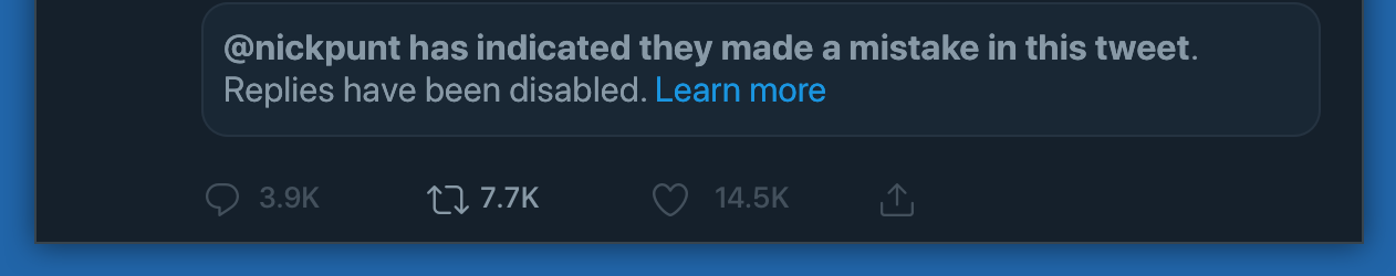 - Poster Mea Culpas, flagging their tweet as a mistake